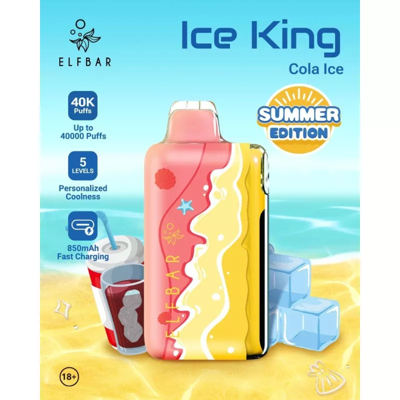 ELFBAR ICE KING Summer Edition — Cola Ice — это одноразовый вейп с узнаваемым вкусом классической колы и освежающим холодным эффектом.