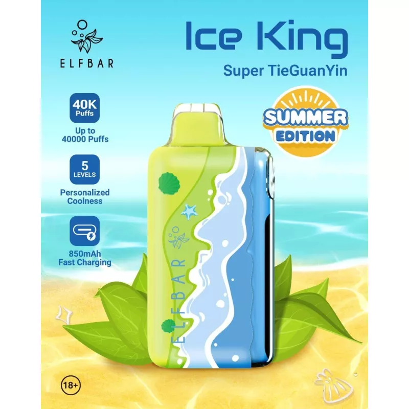 ELFBAR ICE KING Summer Edition Super TieGuanYin — отличный выбор для любителей чайных ароматов и прохладного, комфортного парения на каждый день.